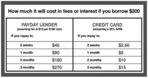 Although regulation already required lenders to provide an annualised percentage rate to customers, this treatment involved comparison of the annualised percentage rate of the payday loan with other financial instruments that the customers are likely familiar with.